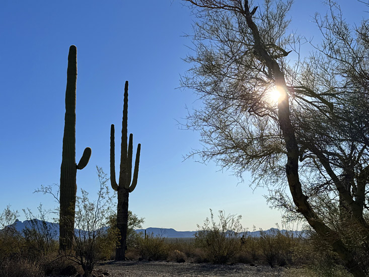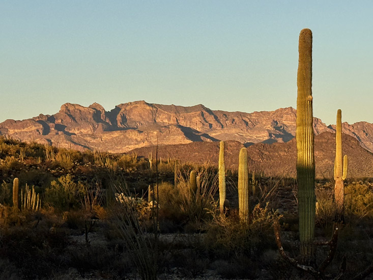 From my campsite (now in the monument's main campground), I wondered how many times over the years I've taken this same photo — the day's last light on the distant Ajo Mountains: