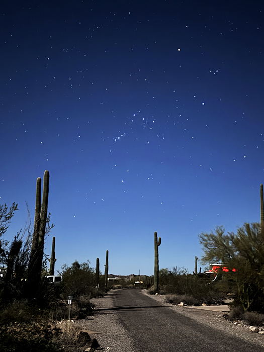 My old friend Orion above the moonlit campground: