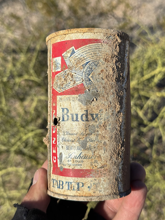 Walking to the next saguaro, I came upon this beer can half-buried in the dirt. I later did a bit of research — it probably dates from the 1960's!