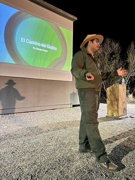 Later, at the campground amphitheater, Ranger Kepler gave a talk on the historical desert route known as El Camino del Diablo ("The Devil's Highway"), which I have driven twice:
